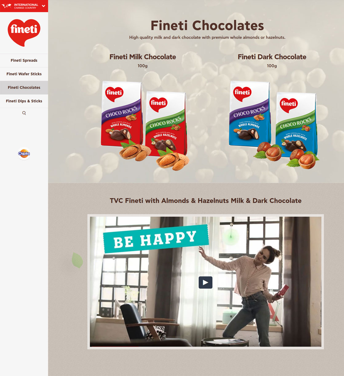 The fineti brand is currently marketed in 21 countries. It comprises Chipita’s confectionery range – mainly hazelnut praline products – for kids and adults.